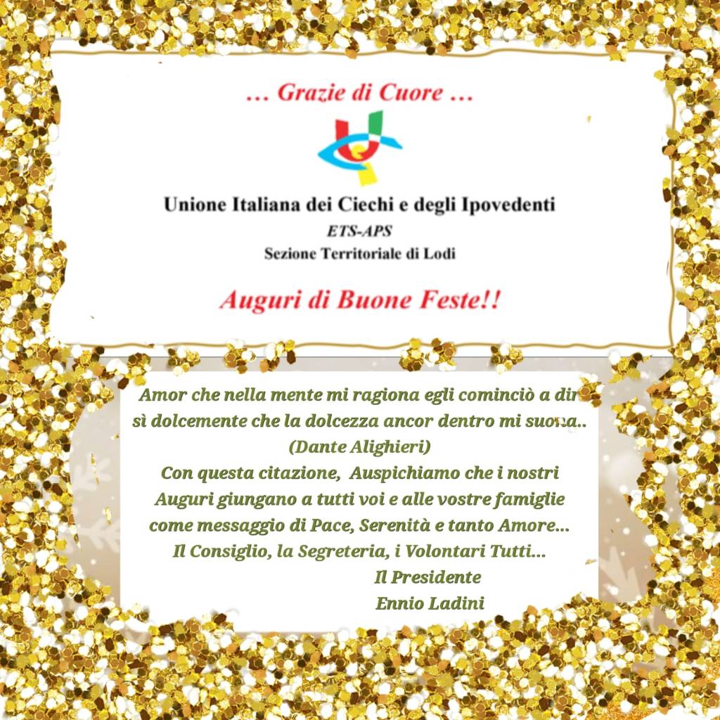 Il Presidente, il Consiglio, l’Ufficio Segreteria e i Volontari dell’Unione Italiana dei Ciechi e degli Ipovedenti ETS-APS Sezione Territoriale di Lodi